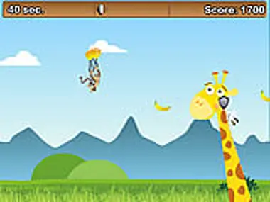 This mischievous monkey flies on the balloons. It collects bananas and pineapples. You should avoid enemies, flying pelican, giraffes, comets, electric power station lets the electro-charge out.