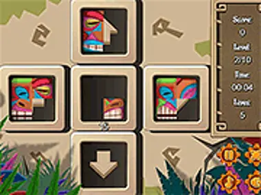 टिकी टोटेमचे चेहरे पूर्ण करा. मध्यभागी असलेले चेहऱ्याचे भाग शेजारील विंडोमध्ये हलवा आणि एक चेहरा पूर्ण करण्याचा प्रयत्न करा. प्राचीन मायन धर्म लिहिण्यासाठी आणि संवाद साधण्यासाठी आकृत्या वापरत असे. चला प्राचीन युगात जाऊया आणि प्रत्येक ब्लॉकमधील टिकी टोटेमचे चेहरे वेळेत जुळवून पूर्ण करूया.